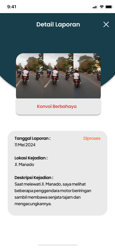 - Pemberitahuan otomatis setelah laporan diterima oleh pihak berwenang.